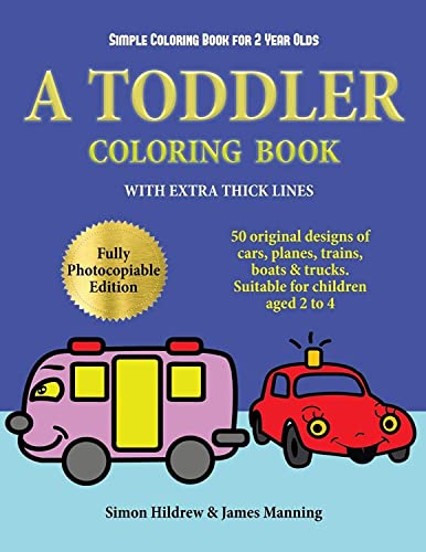 Simple Coloring Book for 2 Year Olds: A toddler coloring book with extra thick lines: 50 original designs of cars, planes, trains, boats, and trucks (suitable for children aged 2 to 4) full version