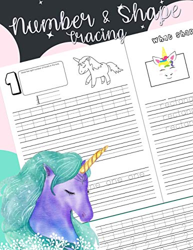 Number & Shape Tracing: 1-20 Numbers and Shapes Tracing Practice Activity Workbook for Pre K, K Unicorn Style full version