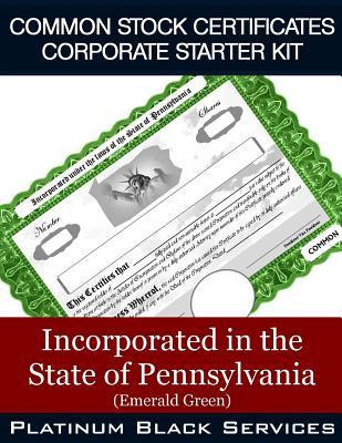 Common Stock Certificates Corporate Starter Kit: Incorporated in the State of Pennsylvania (Emerald Green) full version