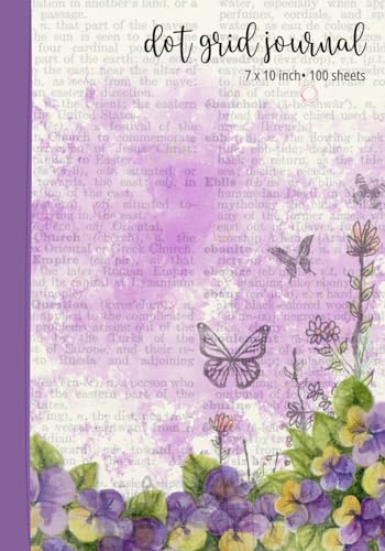 Dot Grid Journal - 7 x 10 inch - 100 sheets: Dot Grid Notebook for Women- Pretty Pansy Flower & Butterfly Print Design - purple, yellow full version