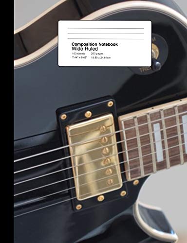 Composition Notebook Wide Ruled 7.44 x 9.69 Inches 100 sheets / 200 pages: Black Guitar full version