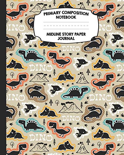 Primary Composition Notebook Midline Story Paper Journal: Dinosaur Pattern Notebook For Grades K-2 | Picture Space | Dashed Midline Paper | Early Childhood Kindergarten Book For Kids full version