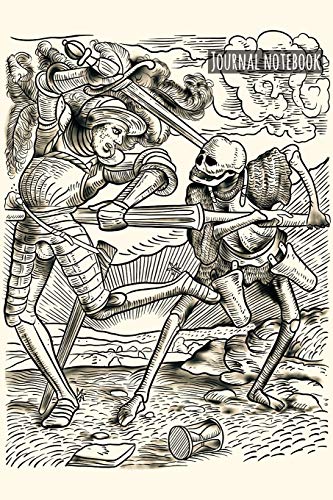 Journal Notebook: The Dance of Death - The Knight in battle with skeleton - Medieval Woodcut Sketch Art - Momento Mori - 6x9 Notebook 140 Pages full version