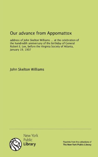 You are about to access our book library "Our advance from Appomattox: address of John Skelton Williams ... at the celebration of the hundredth anniversary of the birthday of General Robert E. ... Virginia Society of Atlanta, January 19, 1907 full version"
