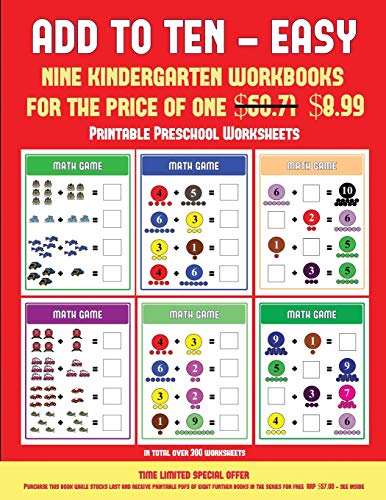 Printable Preschool Worksheets (Add to Ten - Easy): 30 full color preschool/kindergarten addition worksheets that can assist with understanding of math full version