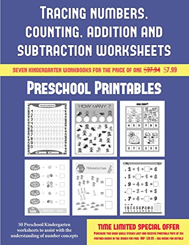 Preschool Printables (Tracing numbers, counting, addition and subtraction): 50 Preschool/Kindergarten worksheets to assist with the understanding of number concepts full version