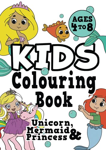Kids Colouring Book: UNICORN, PRINCESS & MERMAID Ages 4-8. Fun, easy, pretty, cool colouring activity workbook for boys & girls aged 4-6, 3-8, 3-5, 6-8 full version