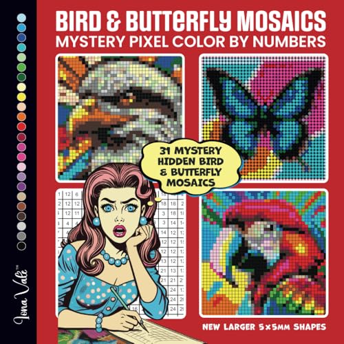 Mystery Mosaics Color by Number Coloring Book: 31 Pixel Art Birds and Butterflies (Mystery Color by Numbers for Adults) full version
