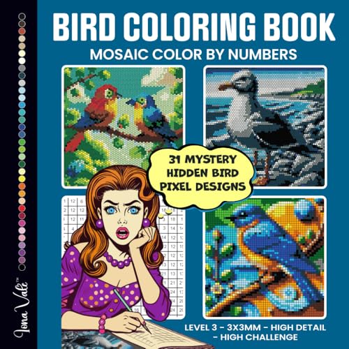 Mystery Mosaic Color by Numbers Bird Coloring Book: 31 Hidden Birds Pixel Puzzles with Color by Number Squares, Hexagons and Circles (Mystery Color by Numbers for Adults) full version