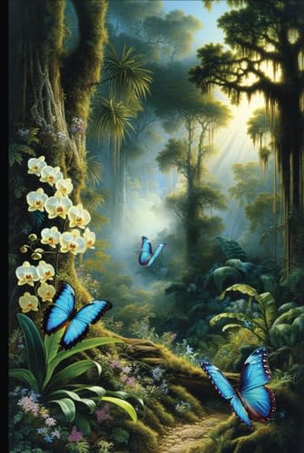 Rainforest Dreaming: Blue Morphos and Orchids Journal.: Lined Notebook College-Ruled 152 pages full version