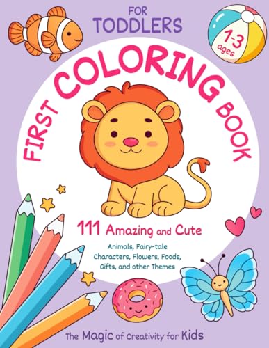 First Coloring Book for Toddlers Ages 1-3. 111 Amazing and Cute Animals, Fairy-tale Characters, Flowers, Foods, Gifts, and other Themes. Magic of Creativity for Kids full version