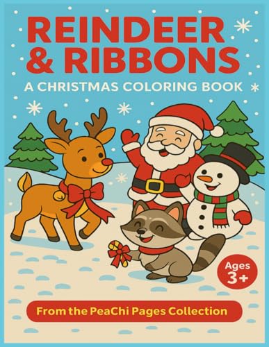 Reindeer & Ribbons: A Christmas Coloring Book: Fun Christmas Scenes to Color for Kids Ages 3+ (PeaChi Pages: Young Artist Coloring Book Series) full version