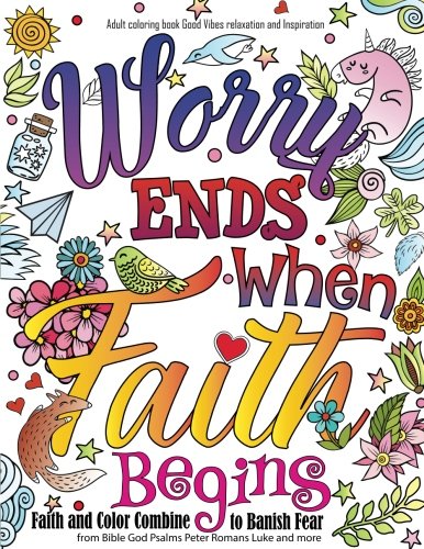 Adult coloring book : Good Vibes relaxation and Inspiration: Worry end when faith begin : Faith and Color Combine to Banish Fear from Bible God Psalms Peter Romans Luke and more full version