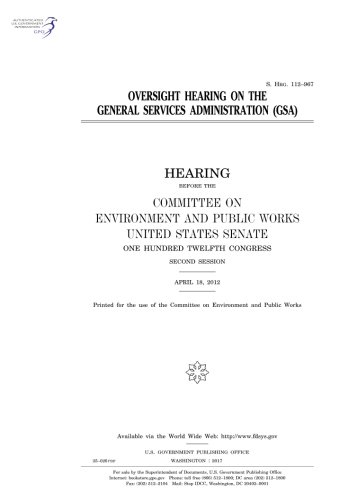 You are about to access our book library "Oversight hearing on the General Services Administration (GSA) : hearing before the Committee on Environment and Public Works, United States Senate, ... Congress, second session, April 18, 2012. full version"