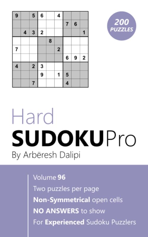 Hard Sudoku Pro: Book for Experienced Puzzlers (200 puzzles) Vol. 96 full version