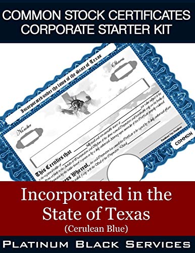 Common Stock Certificates Corporate Starter Kit: Incorporated in the State of Texas (Cerulean Blue) full version