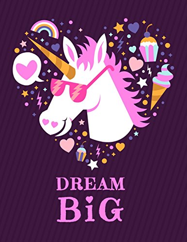 Dream Big: Cool Unicorn With Pink Glasses Sketchbook, 8.5" x 11", 110 Pages, Large Blank Sketchbook With A Colorful Pink Unicorn On A Purple ... And Writing (Unicorn Pictures Notebooks) full version