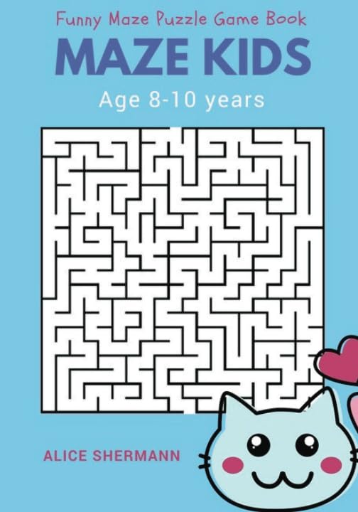 Maze For Kids Age 8-10 Years: Funny Maze Puzzle Game Book, 1 Game per Page, Large Print, Little Cute Cat full version