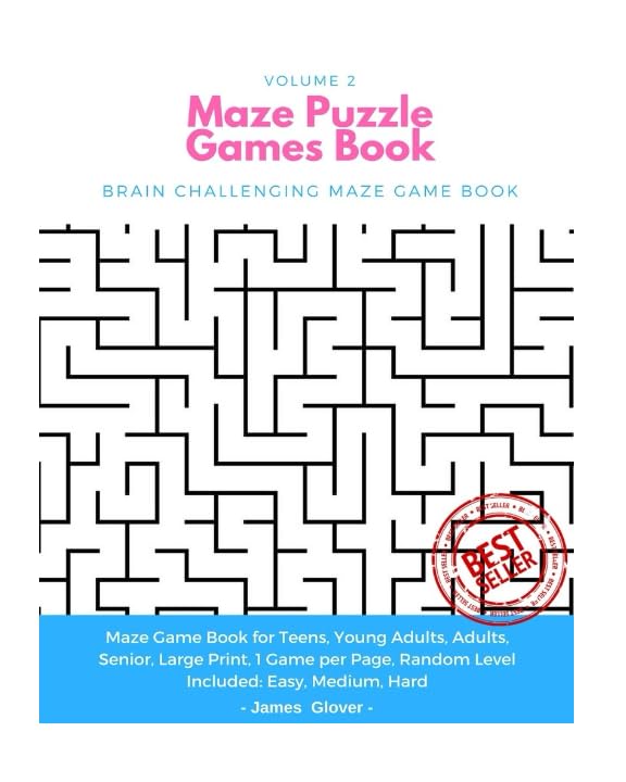 Maze Puzzle Games Book: Brain Challenging Maze Game Book for Teens, Young Adults, Adults, Senior, Large Print, 1 Game per Page, Random Level Included: Easy, Medium, Hard - Volume 2 full version