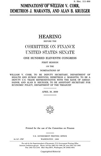 Nominations of William V. Corr, Demetrios J. Marantis, and Alan B. Krueger full version