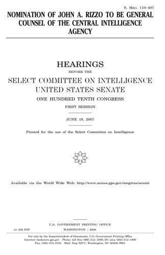 Nomination of John A. Rizzo to Be General Counsel of the Central Intelligence Agency full version