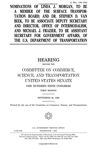 You are about to access our book library "Nominations of Linda J. Morgan, to Be a Member of the Surface Transportation Board; And Stephen D. Van Beek, to Be Associate Deputy Secretary and Director, Office of Intermodalism, and Michael J. Frazier, to Be Assistant Secretary for Government [i.E. Gov full version"