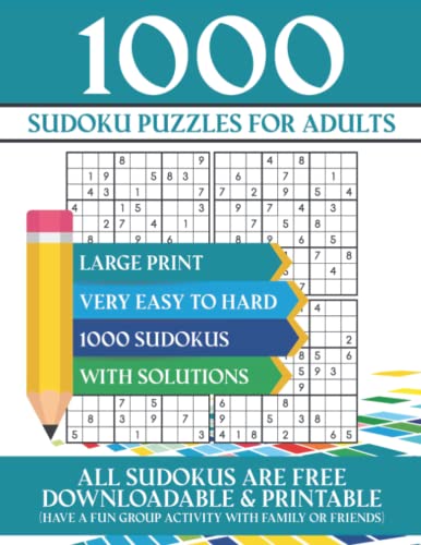 1000 Sudoku Puzzles for Adults: Sudokus Games for Adults, Very Easy to Hard Levels with Solutions, Large Sudoku Book for Adults Come with Downloadable Extra Copies full version