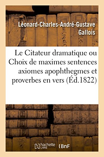 You are about to access our book library "Le Citateur Dramatique Ou Choix de Maximes Sentences Axiomes Apophthegmes Et Proverbes En Vers: Dans Tout Le Répertoire Du Théâtre Français Recueillis ... Par Léonard Gallois (Arts) (French Edition) full version"