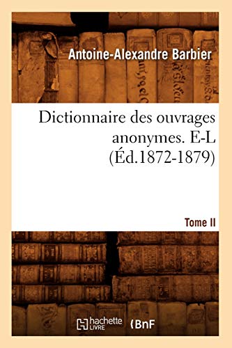 Dictionnaire Des Ouvrages Anonymes. Tome II. E-L (Éd.1872-1879) (Generalites) (French Edition) full version