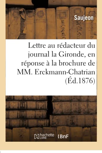 Lettre Au Rédacteur Du Journal La Gironde, En Réponse À La Brochure de MM. Erckmann-Chatrian: Suivie d'Un Petit Récit Historique Sur La Vie d'Un Soldat (French Edition) full version