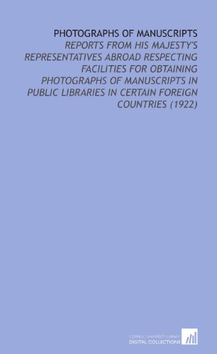You are about to access our book library "Photographs of Manuscripts: Reports From His Majesty's Representatives Abroad Respecting Facilities for Obtaining Photographs of Manuscripts in Public Libraries in Certain Foreign Countries (1922) full version"