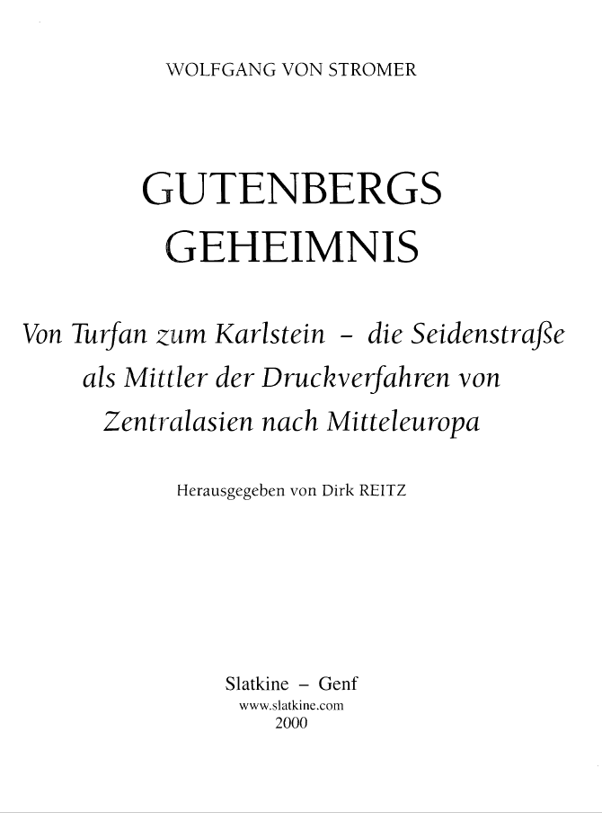 Gutenbergs Geheimnis: von Turfan zum Karlstein - die Seidenstraße als Mittler der Druckverfahren von Zentralasien nach Mitteleuropa full version