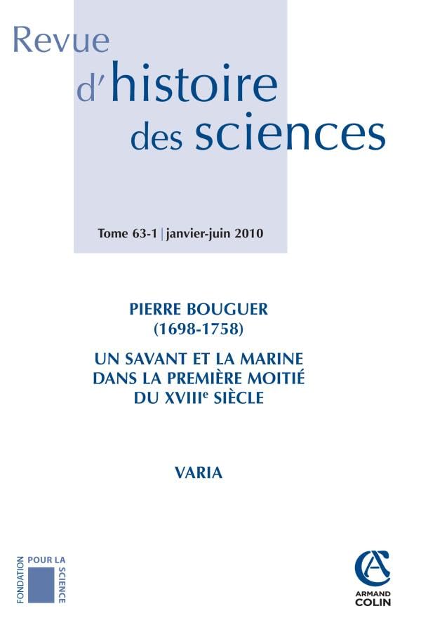 Revue d'histoire des sciences - Tome 63 (1/2010): Pierre Bouguer (1698-1758) un savant et la marine dans la première moitiè du XVIIIe full version