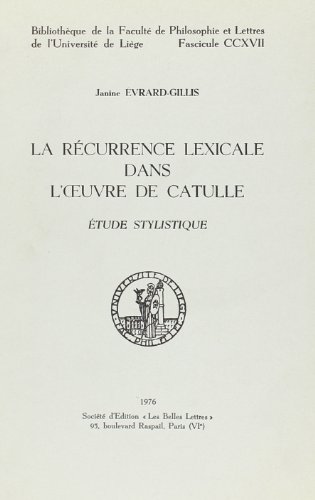 LA RECURRENCE LEXICALE DANS L'OEUVRE DE CATULLE : ETUDE STYLISTIQUE full version