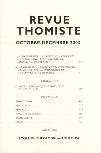 Revue Thomiste - 4/2003 (French Edition) full version