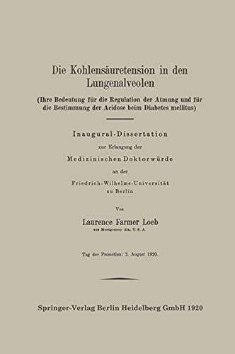Die Kohlensäuretension in den Lungenalveolen: Ihre Bedeutung für die Regulation der Atmung und für die Bestimmung der Acidose beim Diabetes mellitus (German Edition) full version