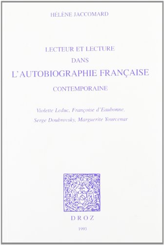 Lecteur Et Lecture Dans L'autobiographie Franc̜aise Contemporaine: Violette Leduc, Françoise D'eaubonne, Serge Doubrovsky, Marguerite Yourcenar full version