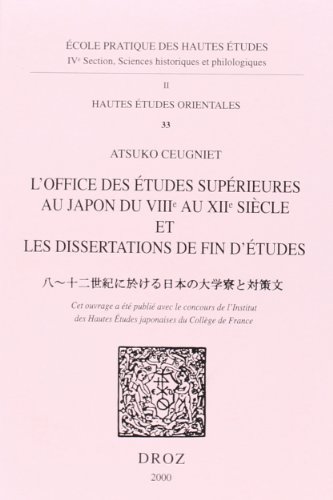 L'OFFICE DES ETUDES SUPERIEURES AU JAPON DU VIIIE AU XIIE SIECLE ET LES DISSERTATIONS DE FIN D'ETUDE full version