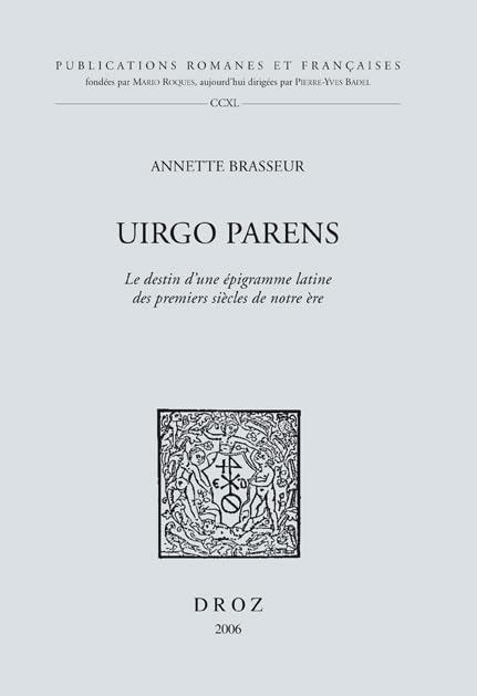 Uirgo parens: Le Destin d'une epigramme latine des premiers siecles de notre ere (Publications Romanes Et Francaises) full version