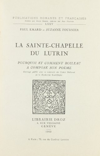 LA SAINTE-CHAPELLE DU LUTRIN : POURQUOI ET COMMENT BOILEAU A COMPOSE SON POEME full version