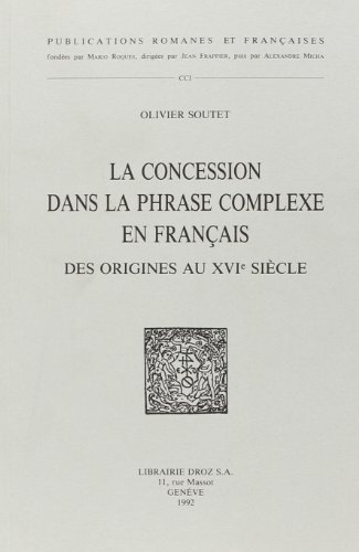 LA CONCESSION DANS LA PHRASE COMPLEXE EN FRANCAIS, DES ORIGINES AU XVIE SIECLE full version