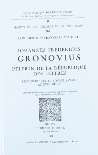 JOHANNES FREDERICUS GRONOVIUS, PELERIN DE LA REPUBLIQUE DES LETTRES : RECHERCHES SUR LE VOYAGE SAVAN full version