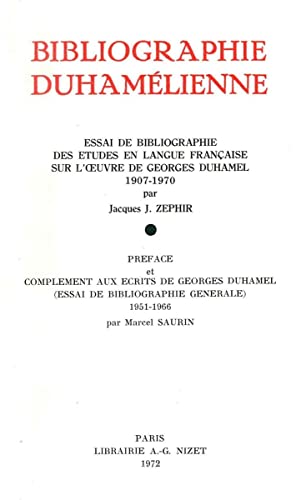 Bibliographie Duhamelienne: Essai de Bibliographie Des Etudes En Langue Francaise Sur l'Oeuvre de Georges Duhamel (1907-1970) (French Edition) full version