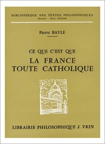 Pierre Bayle: CE Que c'Est Que La France Toute Catholique Sous Le Regne de Louis Le Grand (Bibliotheque Des Textes Philosophiques) (French Edition) full version