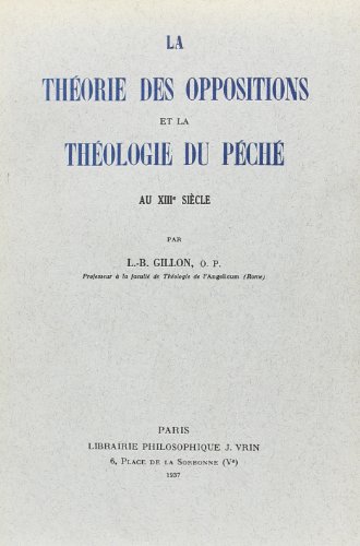 La Theorie Des Oppositions Et La Theologie Du Peche Au Xiiie Siecle (Etudes de Philosophie Medievale) (French Edition) full version