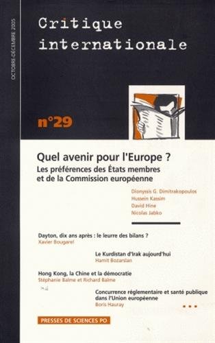 Critique internationale, N° 29, Octobre-Décem : Quel avenir pour l'Europe ? : Les préférences des Etats membres et de la Commission européenne full version