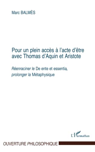 POUR UN PLEIN ACCES A L'ACTE D'ETRE AVEC THOMAS D'AQUIN ET ARISTOTE: Réenraciner le De ente et essentia", prolonger la "Métaphysique"" (French Edition) full version