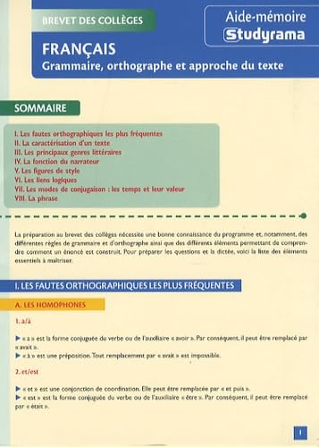 Français Grammaire brevet des collèges: aide mémoire grammaire orthographe et approche du texte full version