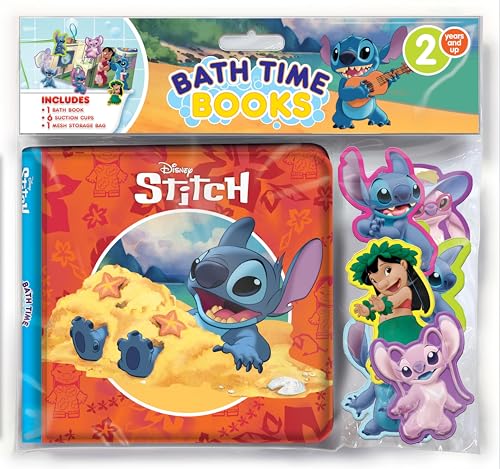 Disney Stitch Bath Time Books - Activity Books for kids, Bath book, 6 Padded suction cups, 1 Mesh bag full version