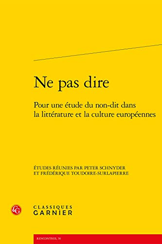 Ne Pas Dire: Pour Une Etude Du Non-Dit Dans La Litterature Et La Culture Europeennes (Rencontres) (French Edition) full version